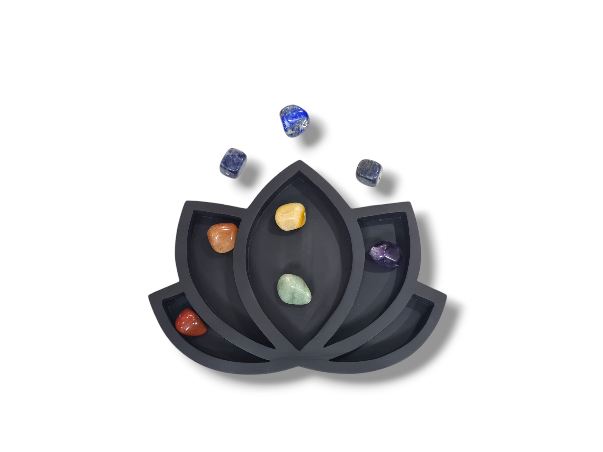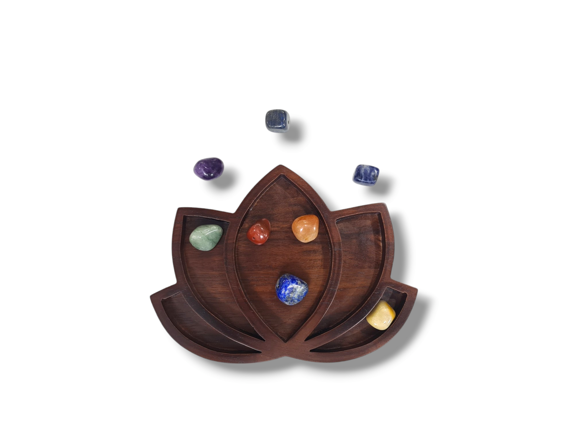 Add a touch of nature-inspired sophistication to your décor with our Lotus Blossom Wooden Tray. Handcrafted from sustainably harvested mango wood by skilled artisans of Moradabad, this elegant tray measures 9x6.5 inches and features beautiful walnut and black finishes. Use it to organize your jewelry or as a stylish display piece.