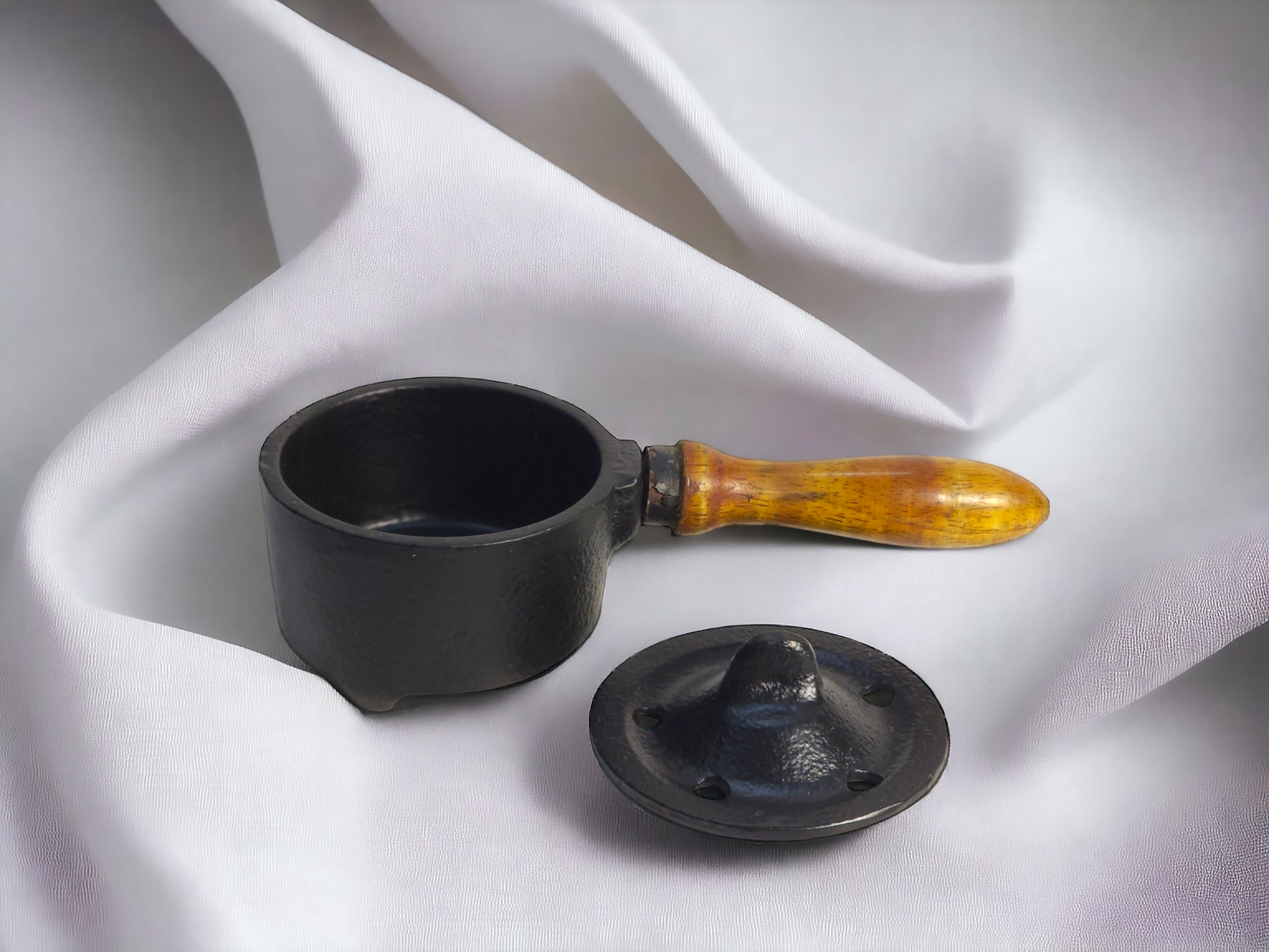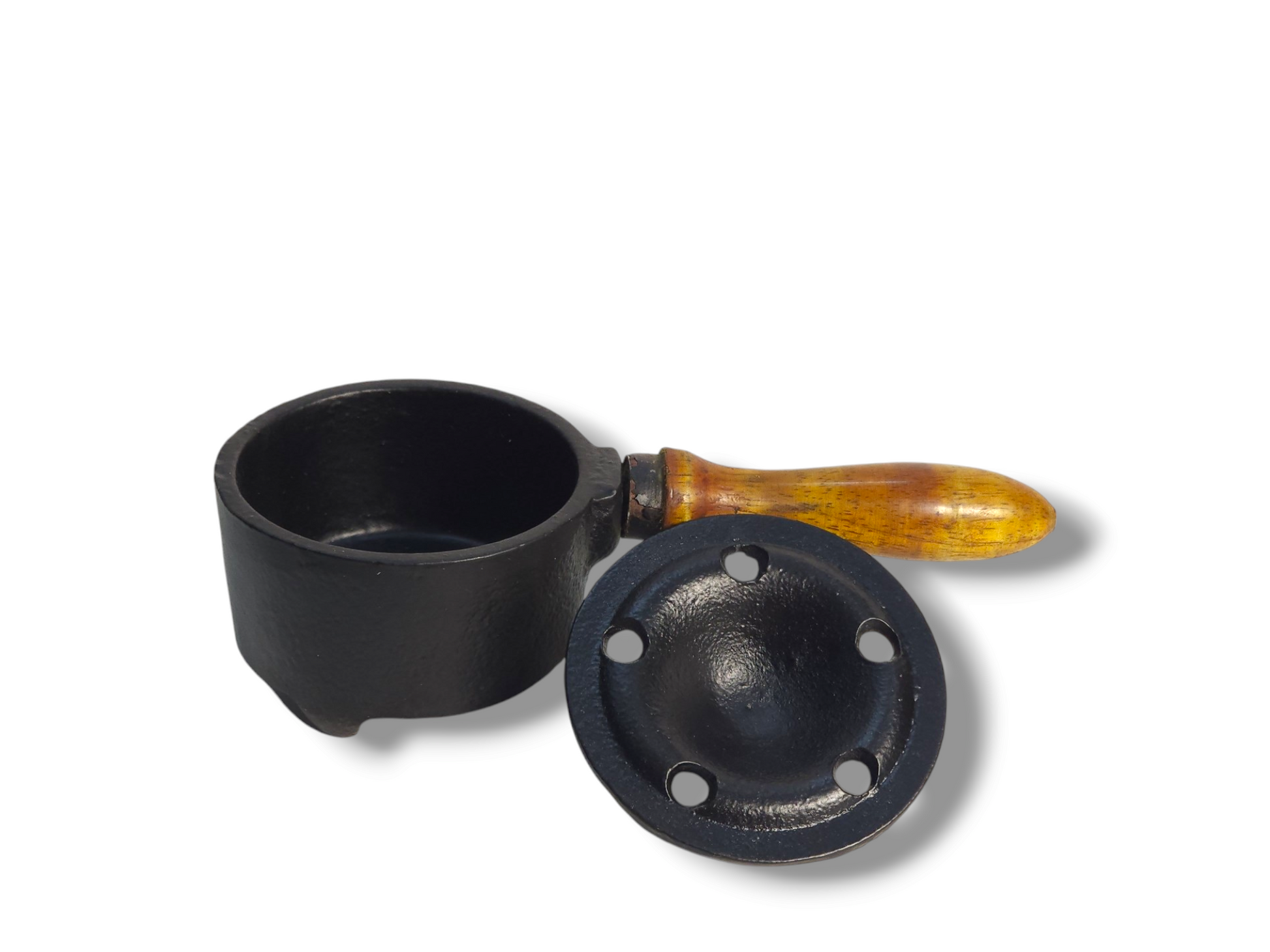 Small Cast Iron Cauldron with Wooden Handle - Perfect for Smudging, Incense Burner, Sage & Palo Santo Burner for Home Indoor/Outdoor Decor Iron T Light Holder